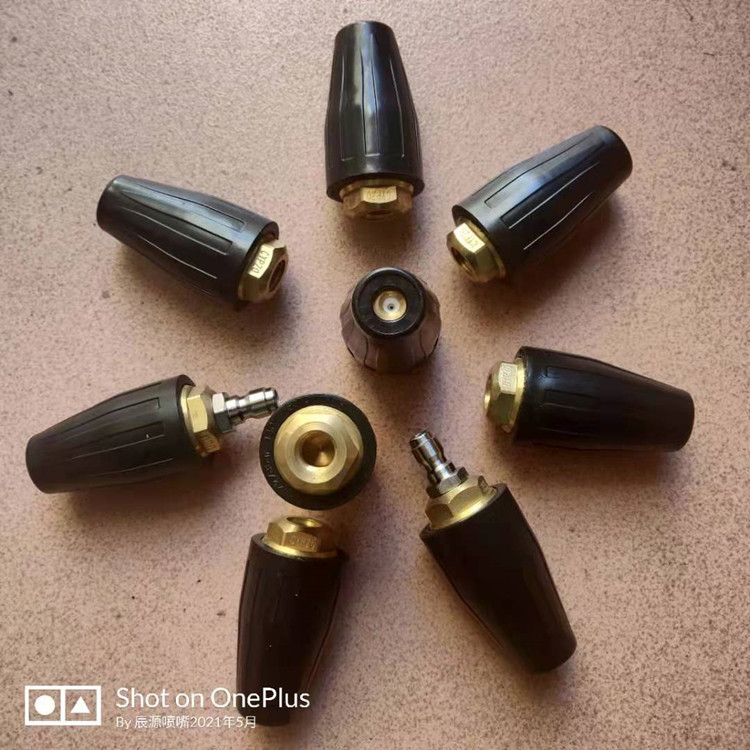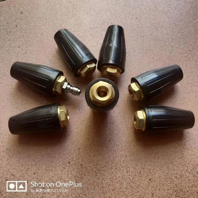 辰源的高压旋转喷头是一款专业冲洗喷嘴,专为高压、高冲击汽车清洗而设计。其基于专业的结构设计,在60公斤压力下,可爆发出一条零度直线水流,在腔内水涡流的驱动下,实现每分钟1500-2500次高速旋转,形成24度锥形圆圈,冲击强劲,相比普通喷嘴压力大,冲洗效果好。 高压旋转喷头因其更强的冲击力,可以使用小流量型号即可以获得与大流量普通喷嘴相同的冲洗效果,从而实现节约用水。