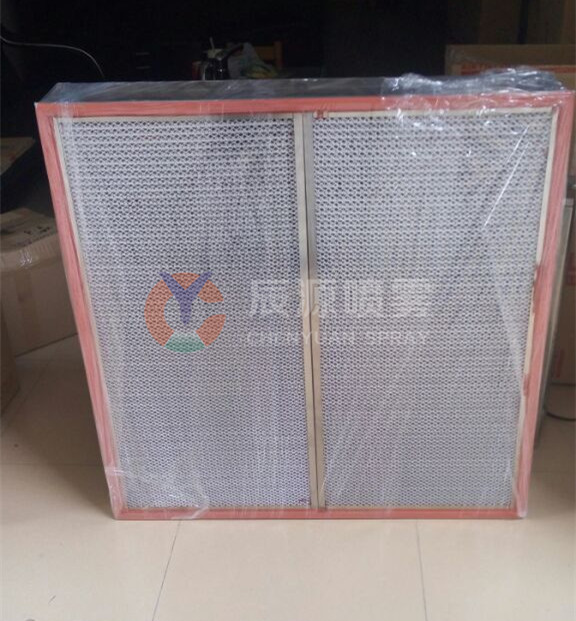超大规格拼接式高温高效过滤器,可有效防止过滤器因风压过大而造成中间踏陷的情况,不影响过滤性能和外观及安装。采用304不锈钢板钣金外框,耐高温过滤滤材,铝箔隔板物,双面不锈钢护网,过滤精度0.3微米 有效率达99.999%