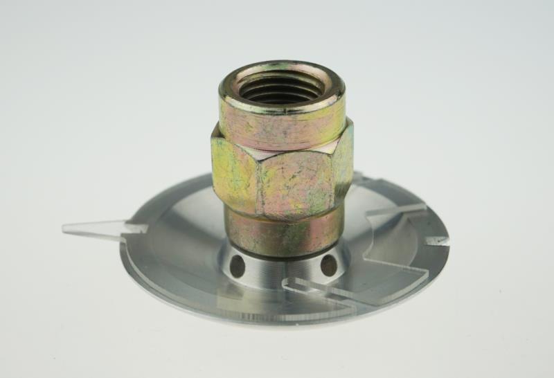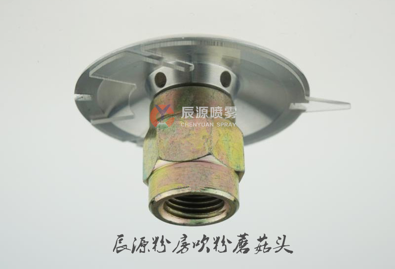 蘑菇头分铝质和POM注塑两种 铝质的是用铝合金棒材通过加工中心各项工艺后成型,因其外似伞状蘑菇所以又叫蘑菇头,主要用于涂装线喷粉房的底部自动清粉,不管是什么材质都会有配锁定螺丝套件,只需在粉柜底板上打孔14mm的孔把蘑菇头牙纹部分穿过去从下面套上螺丝锁紧再插上气管就行,蘑菇头上设计的是内牙
