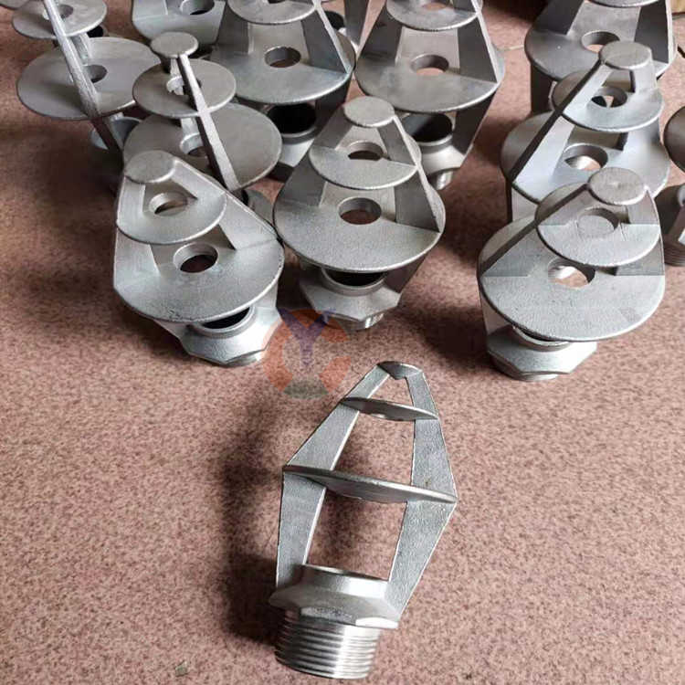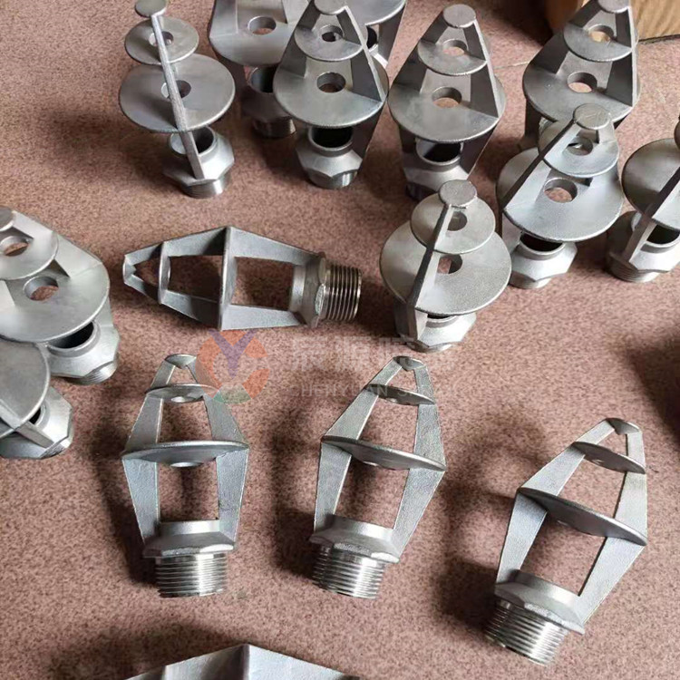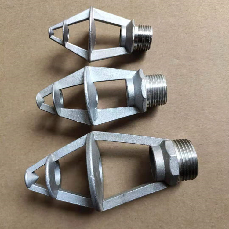 宝塔式防堵喷嘴为生产中根据实际运用的工艺需要而开发的一种系列防堵塞的喷嘴,该喷嘴的喷雾区域是由三个连续的同心圆平台组成的由大到小的倒锥式喷雾方式,喷雾形状有三层空心锥组合而成的,可提供的喷嘴有NPT或BSPT(外)螺纹型。通常1/4英寸-2英寸的喷嘴3041和316不锈钢铸件等。