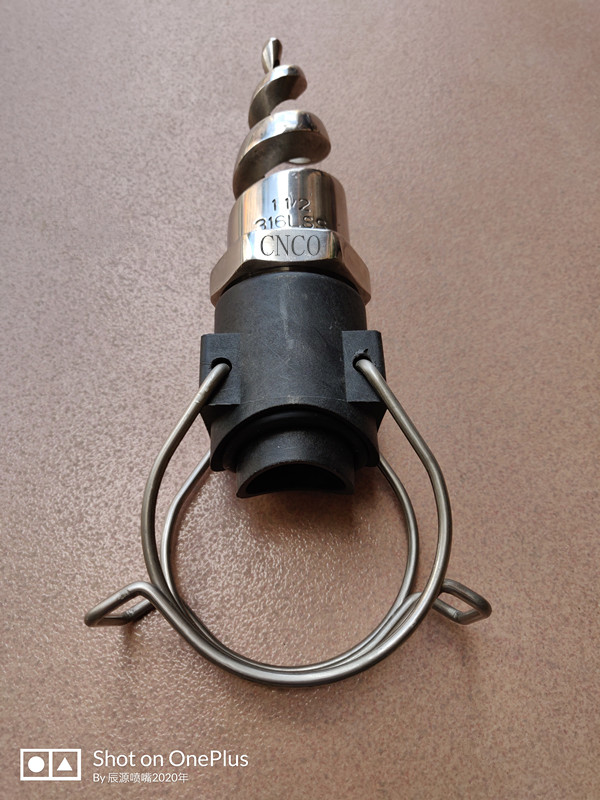 双夹扣螺旋喷头,其实是双夹扣三通式快速接头配大流量大牙纹螺旋喷嘴,喷淋管快速接头 喷淋管分支接头,采用不锈钢304材质全硬弹簧扣,主体PP材质注塑成型,安装时只要在主管上开38mm的孔,把三通式螺旋喷嘴连上喷淋水管,然后直接扣在总管上
