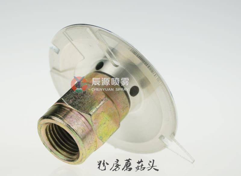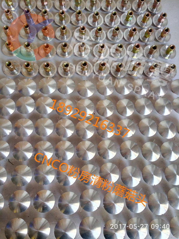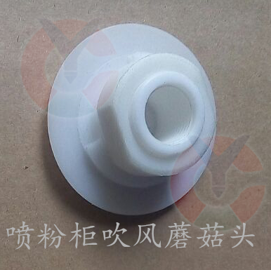 蘑菇头分铝质和POM注塑两种 铝质的是用铝合金棒材通过加工中心各项工艺后成型,因其外似伞状蘑菇所以又叫蘑菇头,主要用于涂装线喷粉房的底部自动清粉,不管是什么材质都会有配锁定螺丝套件,只需在粉柜底板上打孔14mm的孔把蘑菇头牙纹部分穿过去从下面套上螺丝锁紧再插上气管就行,蘑菇头上设计的是内牙